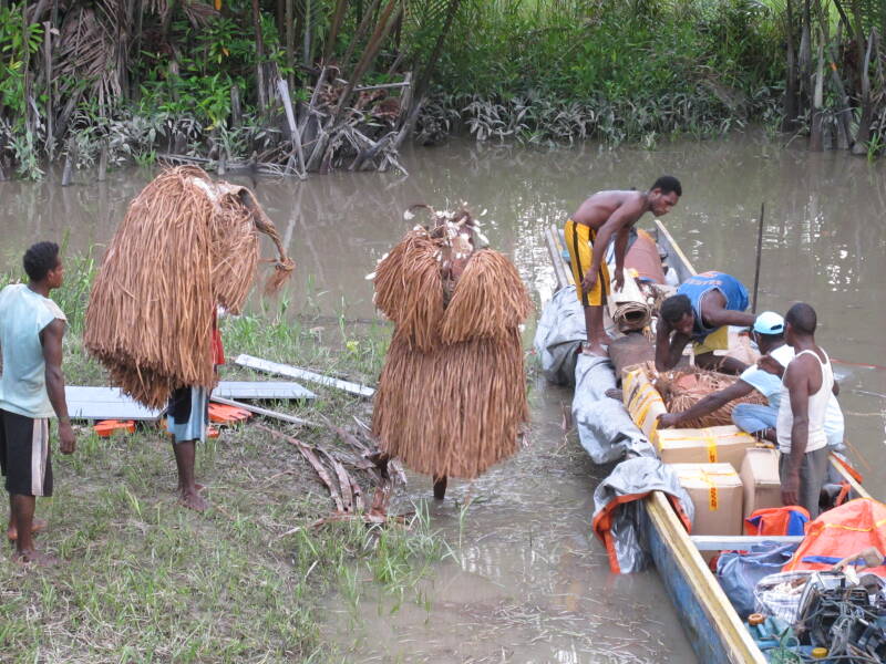 Vlug laden we alles in. De jongens van onze gezonken boot besluiten bij de motor te blijven overnachten en morgen zelf hulp te gaan zoeken. We keren om en laveren weer door de branding. Op zee wordt vol gas gegeven en voordat we het in de gaten hebben schuiven we de mangrovebossen weer in, om even later het bivak te bereiken. Eindelijk. Ik ben nu echt gebroken en voel me zwak. Ik weet nu al dat mijn conditie pijlsnel achteruit gehold is vanmiddag en dat de malaria binnen nu en een uur zijn opwachting zal komen maken. Ik barst van de koppijn en voel alle energie uit m’n lijf wegvloeien. Ik mag op een houten brits gaan liggen. Het maakt me niets meer uit. Doodgaan is nu ook niet meer erg. Zelfs de beloofde sigaret sla ik sloompjes af
